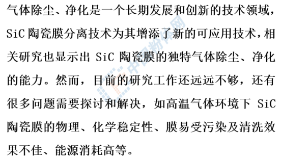 近年SiC陶瓷膜在氣體除塵、凈化方面的應用研究也不斷涌現(xiàn),SiC陶瓷膜有望在氣體分離領域大有作為。