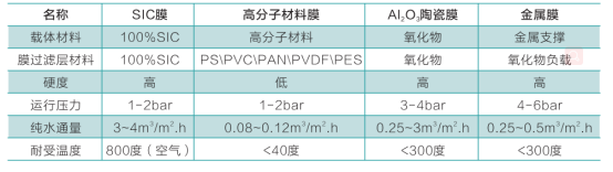 SiC膜與其他膜的優(yōu)勢性能對照表